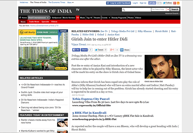 It's been more than 15 years since he started with theatre, television and films. Today, he's one of the most seasoned actor of television having done respected work in various mediums. Girish is a master of his craft and has been open about playing various kinds of roles with much finesse and intensity. His intensity can be seen in the shades of his characters played by him. From romantic to obsessive, positive to aggressive, negative to psychotic, comedy and emotional; he has always tried to explore and express more as an actor.